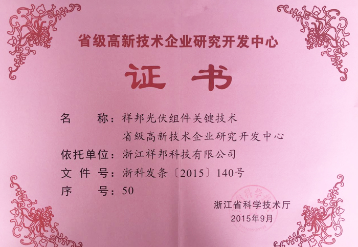 祥邦光伏組件關鍵技術省級高新技術企業研究開發中心